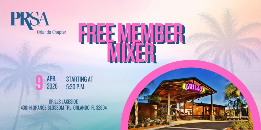 Join PRSA Orlando for our Spring Mixer to meet, mingle, and make meaningful connections with fellow PR pros.